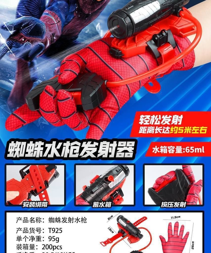 دستکش اسپایدرمن آب پاش یک اسباب بازی آبی به شمار می رود که از مواد با کیفیت ساخته شده است.