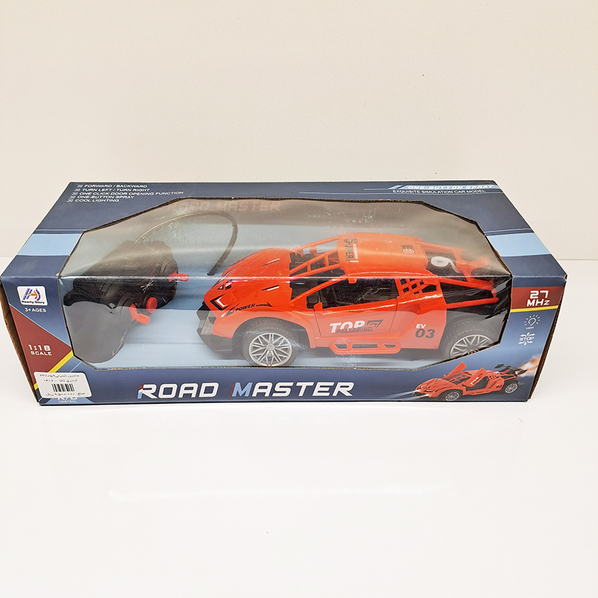 ماشین کنترلی Road Master یک اسباببازی هیجانانگیز برای عاشقان ماشینهای اسپرت است. این مدل با طراحی جذاب، رنگ قرمز چشمگیر و مقیاس 1:18 ساخته شده و امکانات جذابی مثل دربهای بازشو و بالا و پایین شدن درب عقب دارد.