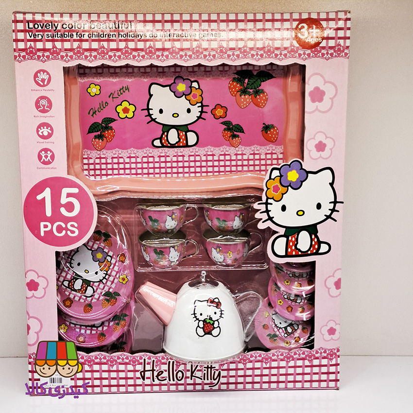 این مجموعه شامل قوری، استکان، نعلبکی، بشقاب و سینی است و برای بازیهای نقشآفرینی و مهمونیبازی فوقالعاده مناسب است. جنس فلزی سبک و ایمن دارد و طراحی زیبای آنا السا و کیتی باعث میشود کودکان از بازی با آن لذت بیشتری ببرند.